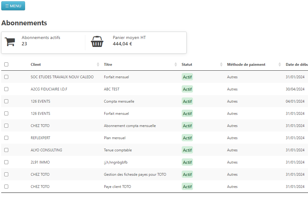 La factures peut être generee automatiquement selon les modalités d’un abonnements (recurence, mode de reglement, échéances…)